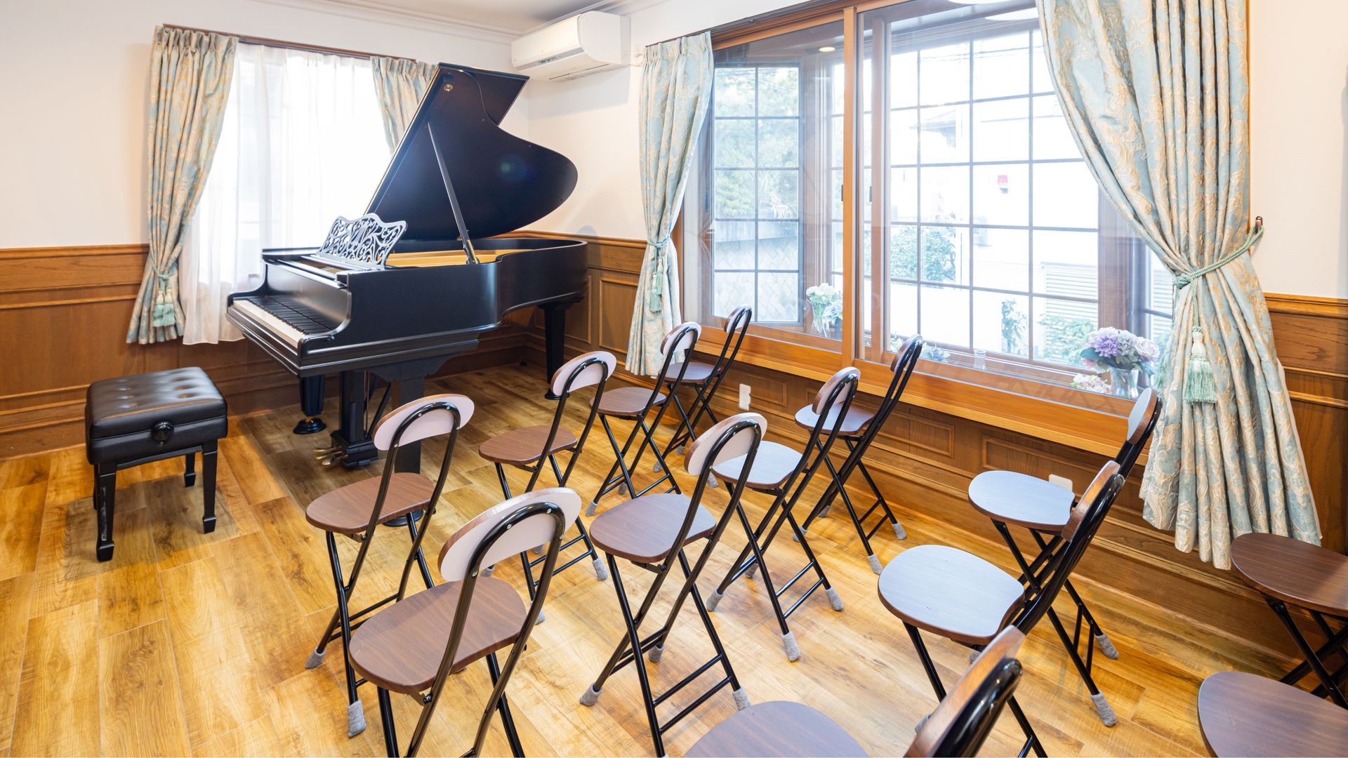 サロンは15名ほど入れる広さになっており、防音設備を施してあります。 主にクラシックやジャズ演奏向けとなっています。